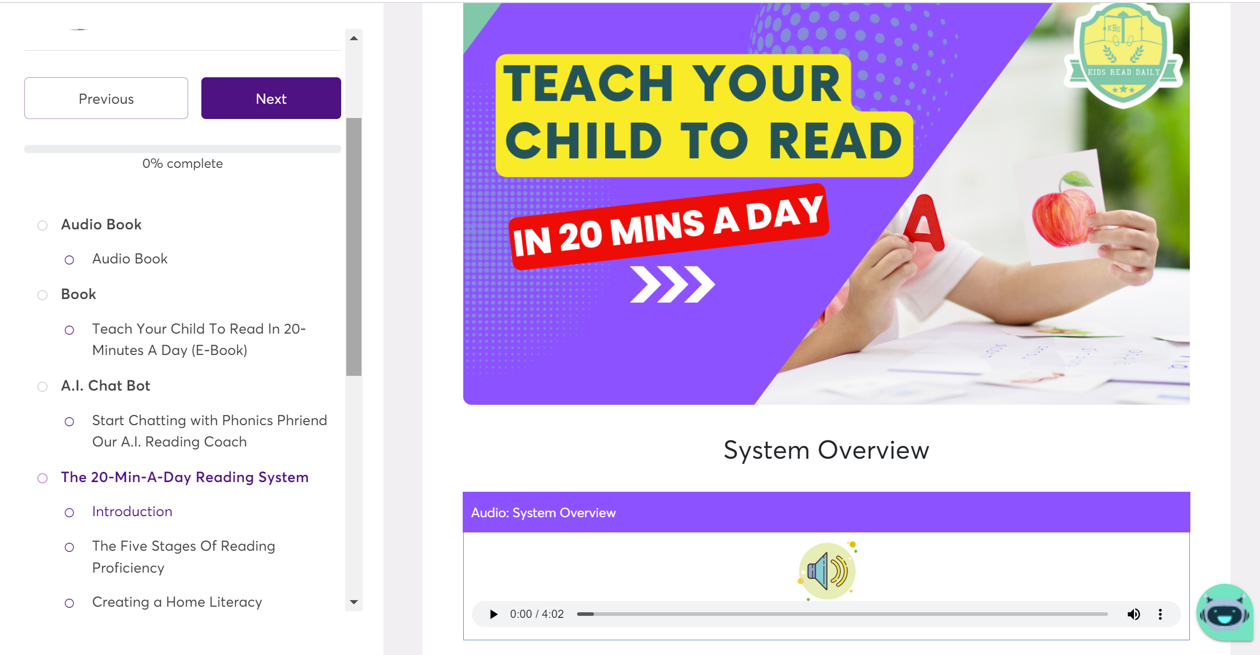 Which includes a book, audiobook, online course, and the ultimate printable learning resource pack, custom-trained A.I. Reading Coach, online portal, and private members-only community.